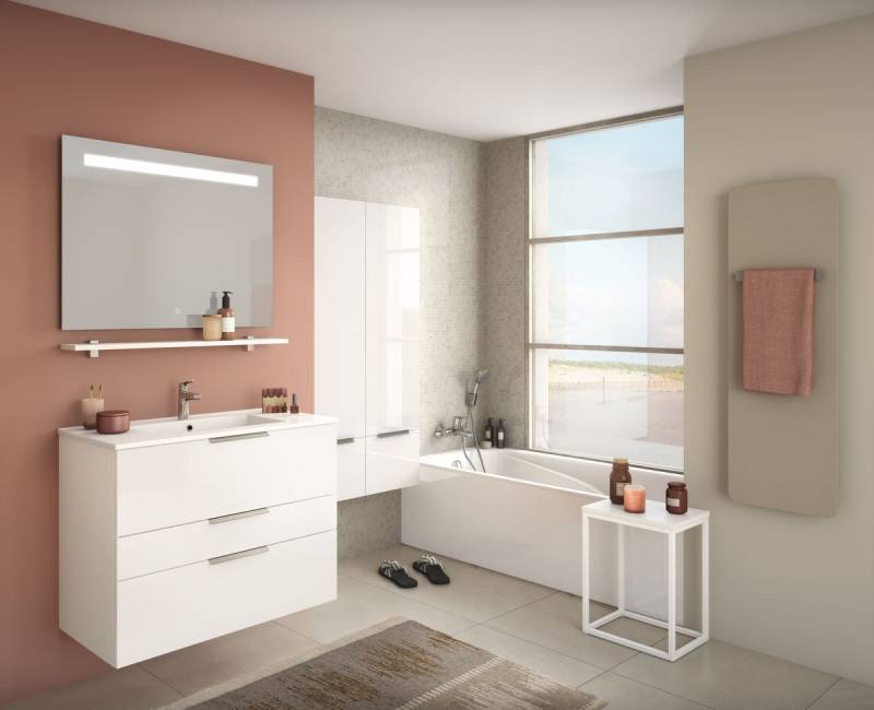 La salle d'eau, entièrement équipée, offre un espace de détente où chaque détail a été pensé pour votre bien-être.