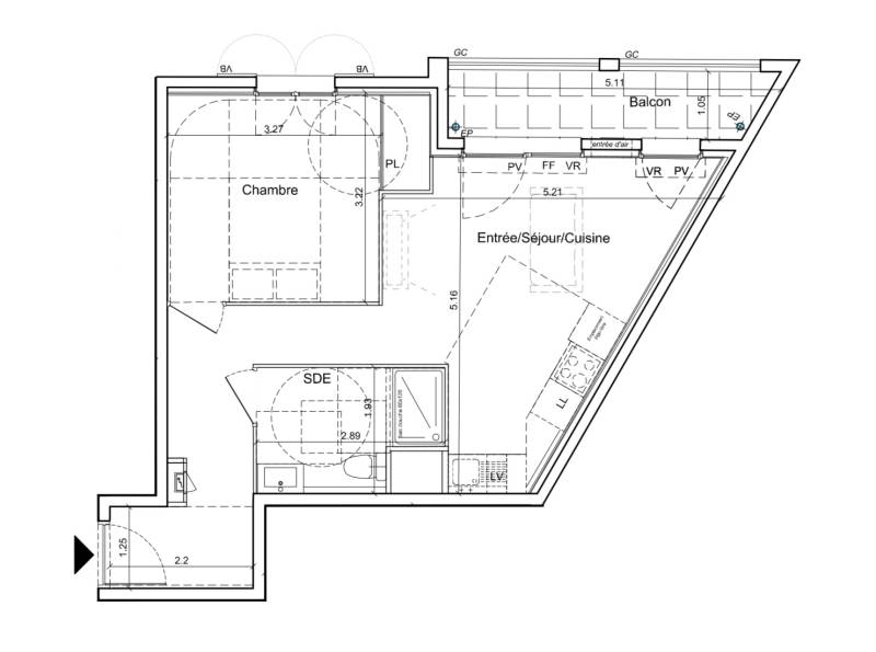 Le cœur de cet espace contemporain réside dans un vaste séjour cuisine de 25 m², créant une harmonie parfaite entre style moderne et fonctionnalité quotidienne. La chambre de 11 m² avec son placard intégré offre une oasis privée, alliant confort et praticité.