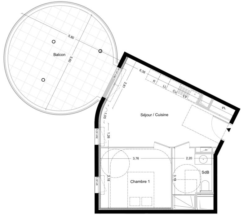 Les spécificités de ce joyau immobilier incluent un séjour-cuisine spacieux de 22 m2, une chambre de 12 m2 avec placard intégré, et une salle d'eau équipée.